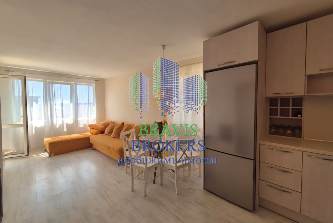 БРИЗ — ОБЗАВЕДЕН ТРИСТАЕН С МОРСКА ПАНОРАМА — ТУХЛЕНА СГРАДА – СРЕДЕН ЕТАЖ !