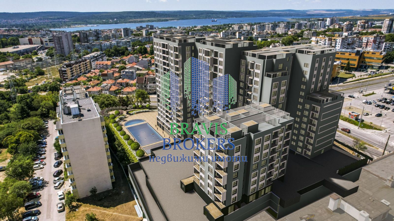 За комплекса : Комплексът се състои от четири тела, всяко със самостоятелен вход и различна етажност. За нормалното обслужване на живущите в по-големите тела са предвидени по 2 и 3 асансьора. Последните етажи се състоят от жилища, с прилежаща покривна тераса с пергола, от която се открива нескриваема панорамна гледка към Варненското езеро, града и морето. Подсигурено е паркиране на 486 автомобила в закрити подземни паркинги на котата -3.80 и котата 0.00, открит паркинг на котата +2.90, частично покрити имоти над него, и открит външен паркинг. Зоната за развлечение включва изграждане на две закрити и две външни, и джакузи с място за слънчеви бани, фитнес, масажни помещения, СПА център, както и кабинети, предназначени за извършване на специализирани рехабилитационни и басейнови спортно възстановителни процедури. Предвижда се басейните да бъдат запазени с термална минерална вода.